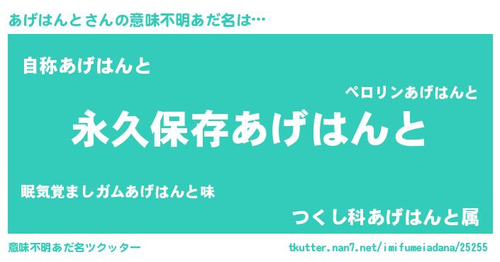 | ヘコむあだ名 | 『あげはんと(苦笑)』『あげもー』 |