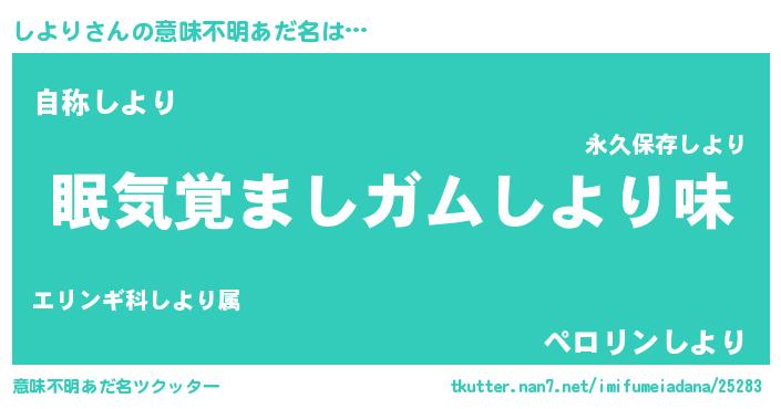 | ヒーロー風カッコイイあだ名 | 『天空の使者しより』『最強戦士シヨリ』 |