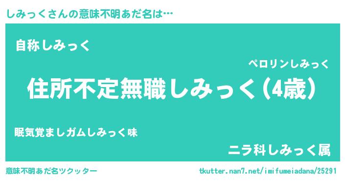 | 男性向けラノベタイトル風あだ名 | 『この素晴らしい世界にしみっくを!』 |