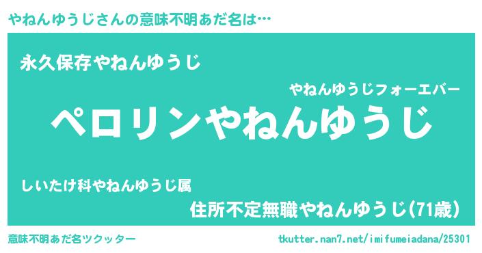 | ヒーロー風カッコイイあだ名 | 『スーパーヤネンユウジ』『仮面ヤネダー』 |