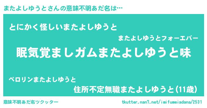 | ポケモン風あだ名 | 『マックウザ』『ヒマタヨシユウト』 |