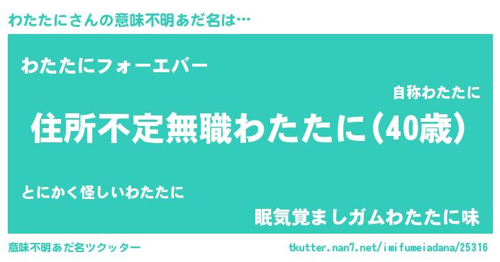 | 男性向けラノベタイトル風あだ名 | 『この素晴らしい世界にわたたにを!』 |