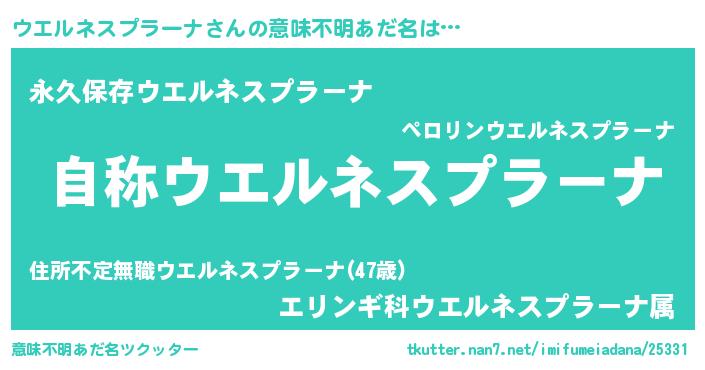 | 男性向けラノベタイトル風あだ名 | 『Re:ウエルネスプラーナから始める異世界生活』 |