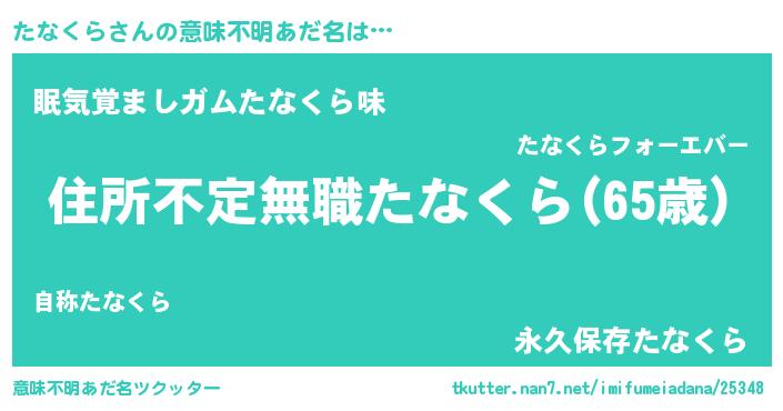 | 男性向けラノベタイトル風あだ名 | 『この素晴らしい世界にたなくらを!』 |