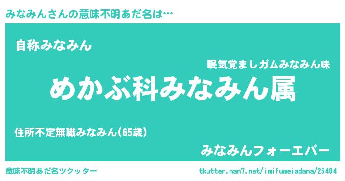 | 男性向けラノベタイトル風あだ名 | 『ミナミンスレイヤー』 |