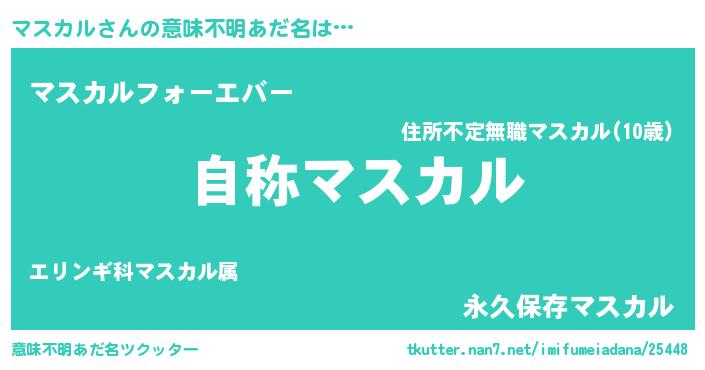 | 女子向けラノベタイトル風あだ名 | 『マスカルなんてお断りですっ。』 |