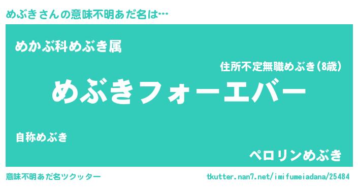 | ヒーロー風カッコイイあだ名 | 『ウルトラめぶきマン』『スーパーメブキ』 |
