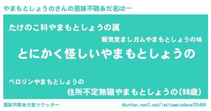 | 胡散臭い通販商品みたいなあだ名 | 『全米が絶賛したサプリメント…その名も「やまもとしょうの」』 |