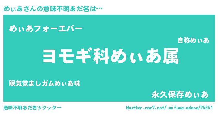 | 胡散臭い通販商品みたいなあだ名 | 『運命の人と巡り会える高級そうな壺…その名も「めぃあ」』 |