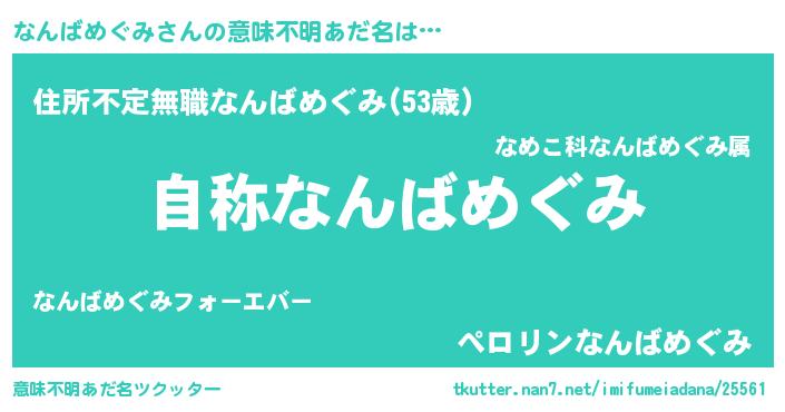 | 肩書あだ名 | 『なんばめぐみ総統』『なんばめぐみ教官』 |