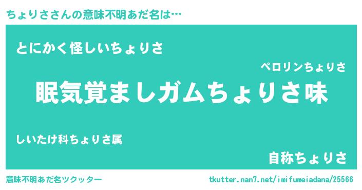 | ヒーロー風カッコイイあだ名 | 『天空の使者ちょりさ』『炎刃騎士チョ』 |