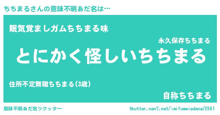 | 男性向けラノベタイトル風あだ名 | 『ちちまるの嫁は女の子じゃないと思った?』 |