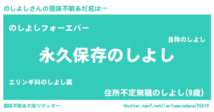 | 男性向けラノベタイトル風あだ名 | 『のしよしという概念が存在しない退屈な世界 』 |