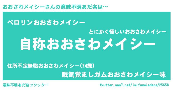 | 肩書あだ名 | 『おおさわメイシー閣下』 |