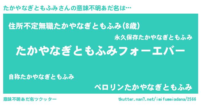 | ファンタジー風あだ名 | 『エターナルタカヤナギトモフミー』 |