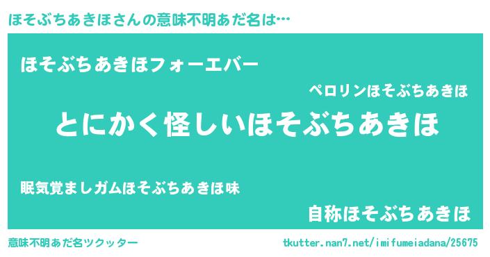 | 女子向けラノベタイトル風あだ名 | 『ほそぶちあきほの卵を拾いまして』 |
