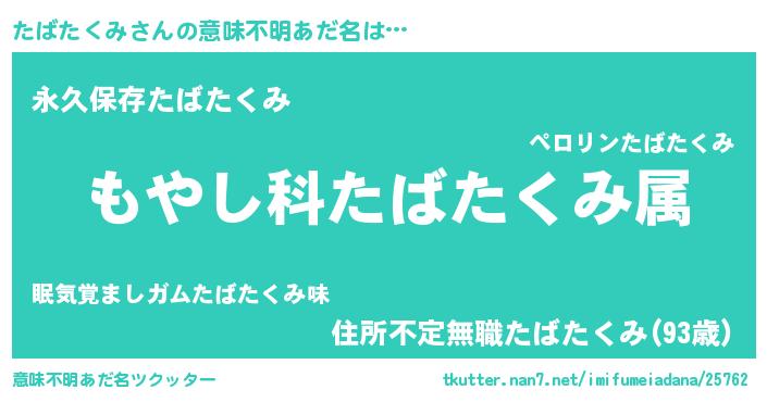 | 男性向けラノベタイトル風あだ名 | 『たばたくみに滅ぼされるだけの簡単なお仕事です』 |