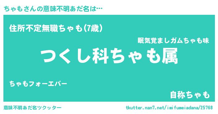 | 女子向けラノベタイトル風あだ名 | 『ちゃもの玉の輿計画!』 |