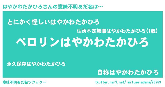 | 男性向けラノベタイトル風あだ名 | 『はやかわたかひろの憂鬱』 |