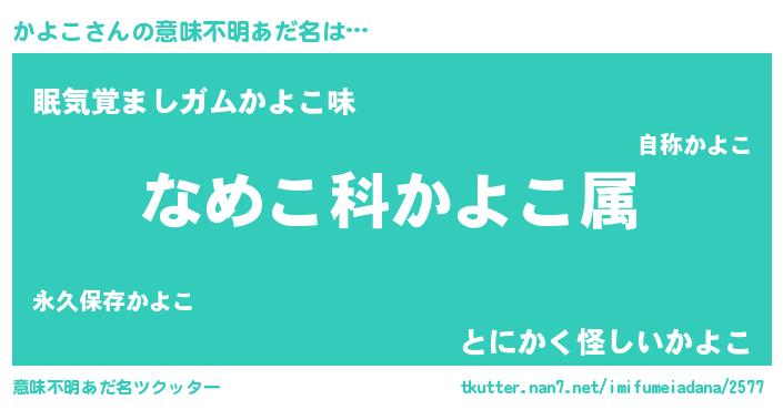 | ヘコむあだ名 | 『かよぷりん』『かよこ(笑)』 |