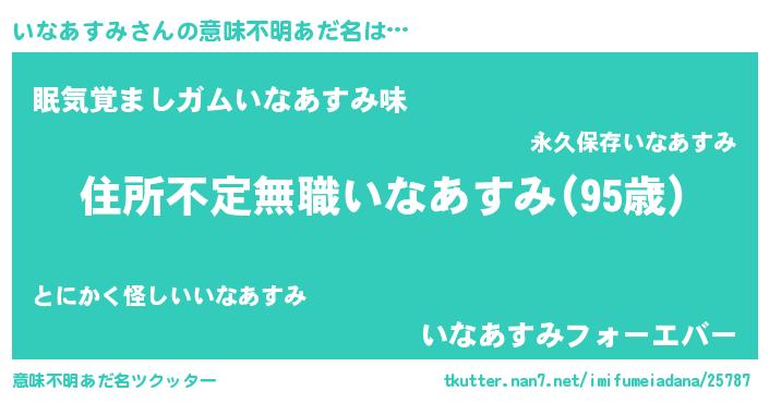 | 欧米人風あだ名 | 『いなあすみ・ステッグマイヤー』 |