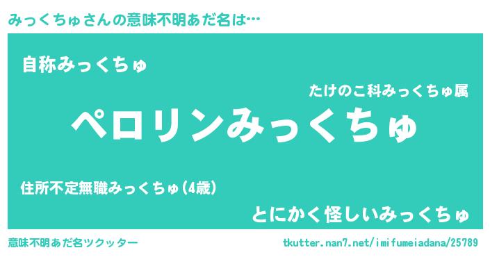 | 胡散臭い通販商品みたいなあだ名 | 『億万長者になれる霊験あらたかなお札…その名も「みっくちゅ」』 |