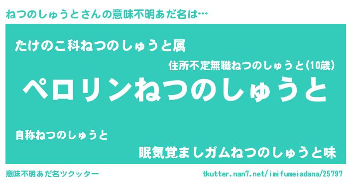 | 胡散臭い通販商品みたいなあだ名 | 『必ず成功するブレスレット…その名も「ねつのしゅうと」』 |