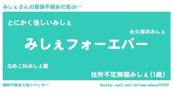 | 伝説のあだ名 | 『最強の忍者みしぇ』 |