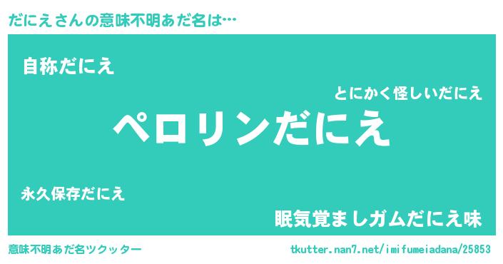 | 胡散臭い通販商品みたいなあだ名 | 『億万長者になれるブレスレット…その名も「だにえ」』 |