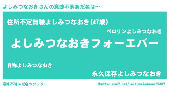 | 肩書あだ名 | 『よしみつなおき国家主席』 |