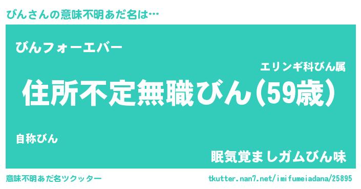 | ポケモン風あだ名 | 『ビーンイ』『ビンゴンZ』『ビンダネ』 |