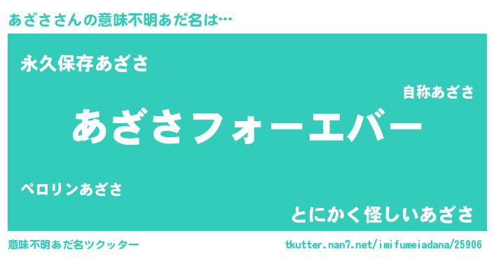 | 欧米人風あだ名 | 『あざさクリステル』『ウサインあざさ』 |