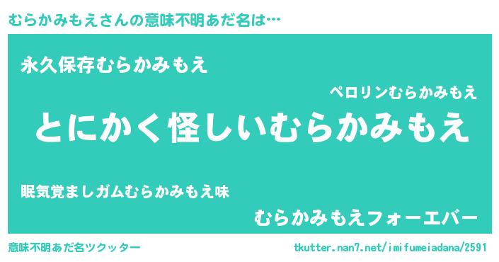 | ヘコむあだ名 | 『むらを』『むらかみもえ(爆)』 |