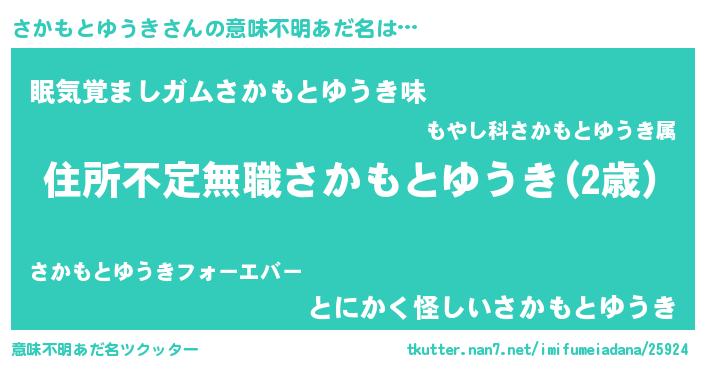 | 女子向けラノベタイトル風あだ名 | 『さかもとゆうきが死なない童話 林檎のさかもとゆうきの診療簿』 |
