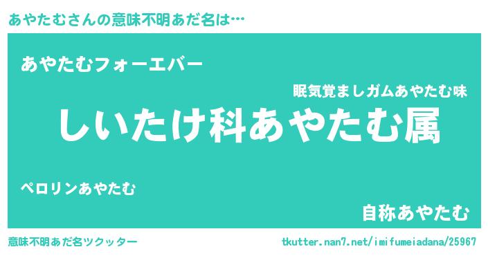 | 欧米人風あだ名 | 『あやたむ・ステッグマイヤー』 |