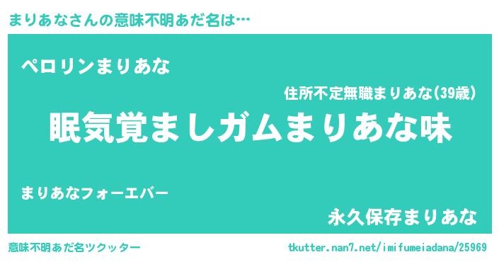 | ヒーロー風カッコイイあだ名 | 『慈愛の使者まりあな』『ネオマリアナ』 |
