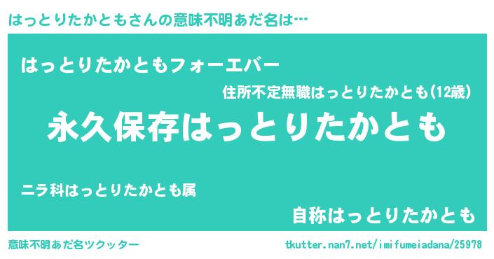 | ヘコむあだ名 | 『はっとりたかとも(笑)』『つくし』 |