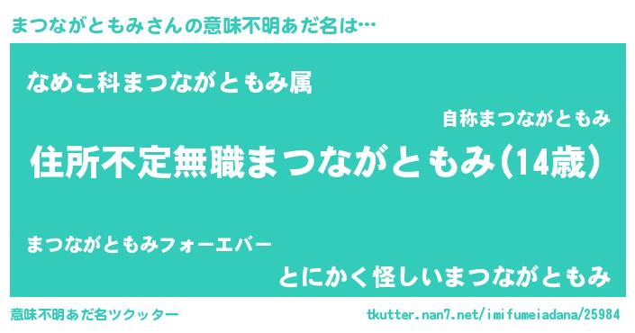 | 伝説のあだ名 | 『孤高の僧侶まつながともみ』 |
