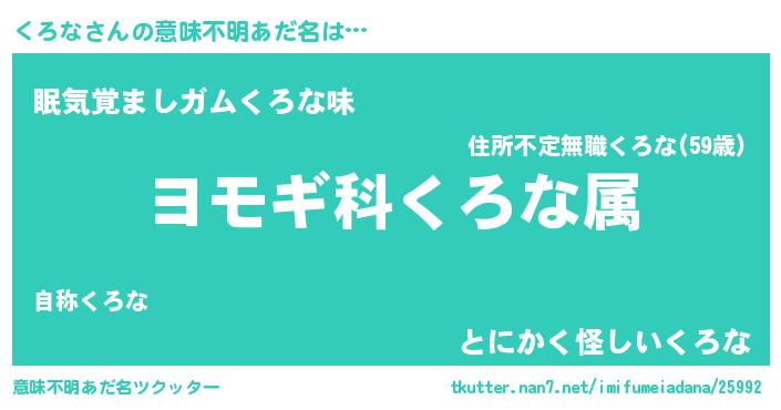 | 欧米人風あだ名 | 『トリンドルくろな』『ダニエルくろな』 |
