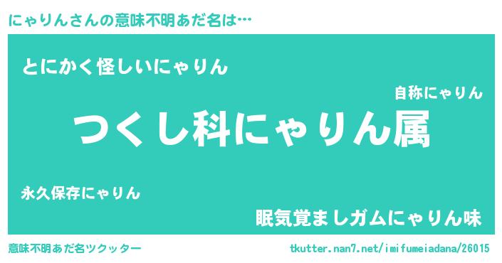 | 男性向けラノベタイトル風あだ名 | 『にゃりん~年齢イコール彼女いない歴の魔法使い~』 |