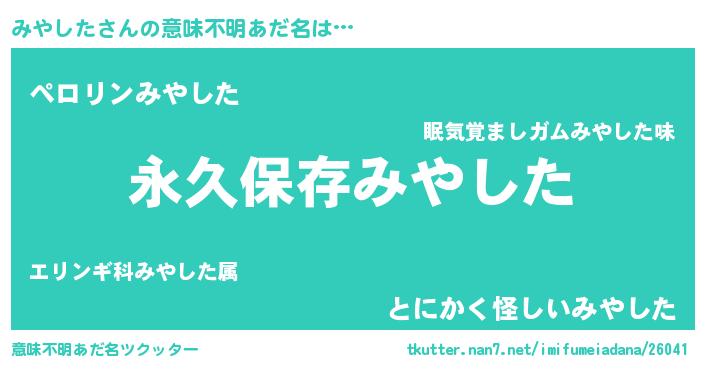 | 胡散臭い通販商品みたいなあだ名 | 『来世でも幸せになれる健康食品…その名も「みやした」』 |