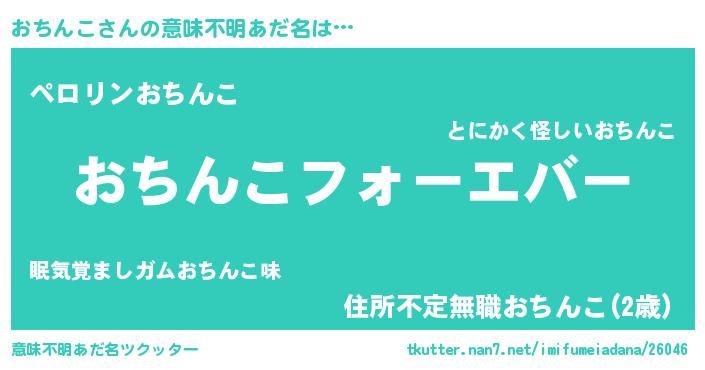 | 男性向けラノベタイトル風あだ名 | 『おちんこに滅ぼされるだけの簡単なお仕事です』 |