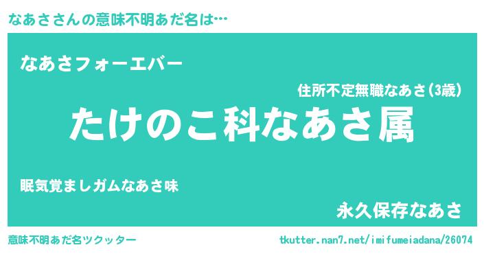 | 男性向けラノベタイトル風あだ名 | 『転生したらなあさだった件』 |