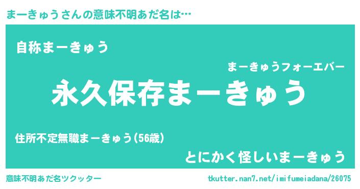 | 伝説のあだ名 | 『聞きしに勝る暗殺者まーきゅう』 |