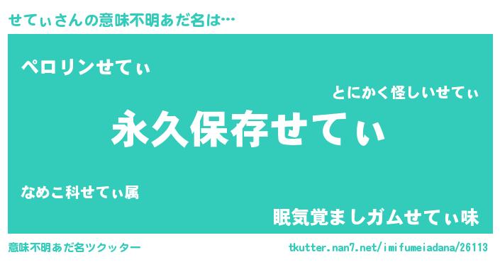| 男性向けラノベタイトル風あだ名 | 『せてぃという概念が存在しない退屈な世界 』 |