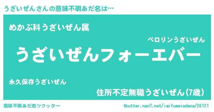 | ファンタジー風あだ名 | 『エターナルウザイゼンー』『ウザフェル』 |
