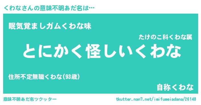 | 男性向けラノベタイトル風あだ名 | 『くわなの嫁は女の子じゃないと思った?』 |