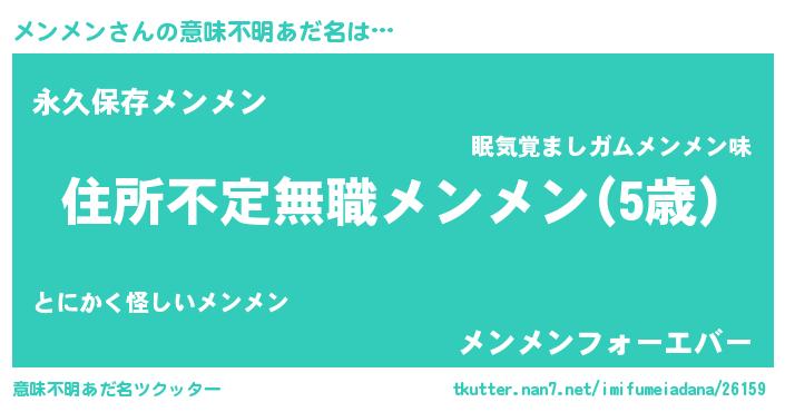 | 男性向けラノベタイトル風あだ名 | 『この素晴らしい世界にメンメンを!』 |