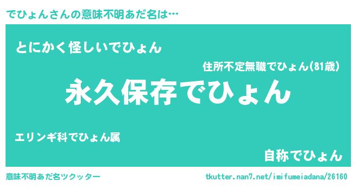 | 胡散臭い通販商品みたいなあだ名 | 『絶対に幸福をもたらす健康食品…その名も「でひょん」』 |