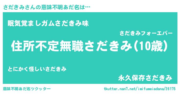 | 男性向けラノベタイトル風あだ名 | 『さだきみに滅ぼされるだけの簡単なお仕事です』 |